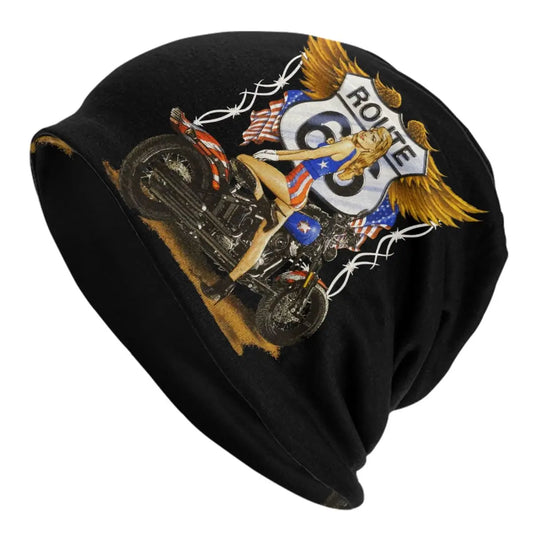 Custom Ride The Route 66 Bonnet Hat Knitting Hats Men Women Cool Biker Motorcycle Cruise
